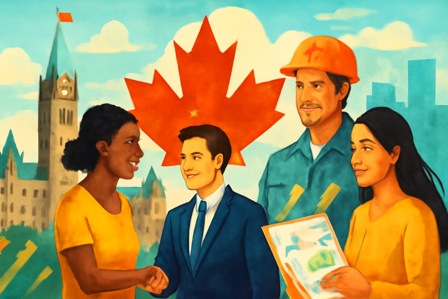 カナダ政府は、世界から優れた人材を呼び込み、重要な分野の人手不足を埋めることで、強い経済をつくる方針です。この方針を進めるため、経済への参加を支えるサービスに投資を行います。